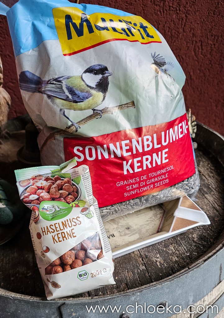 On en a profité pour acheter des noisettes et des graines de tournesol pour Madame Écureuil. Et ce soir — surprise totale — ils sont deux à venir se goinfrer au même endroit. J’ai littéralement crié de joie.