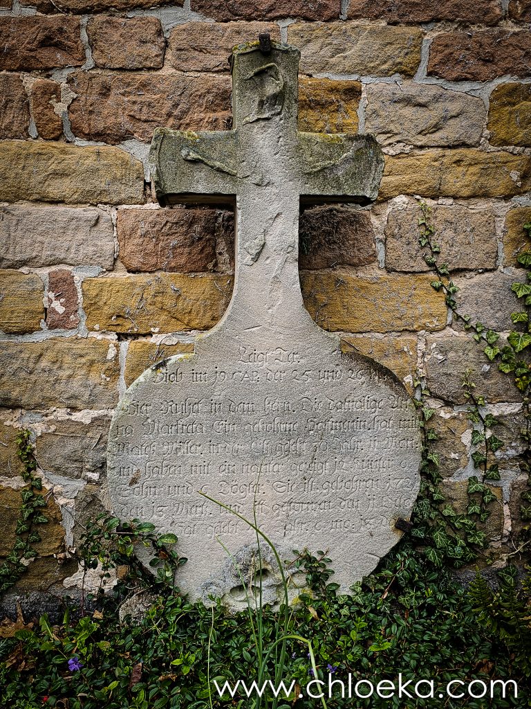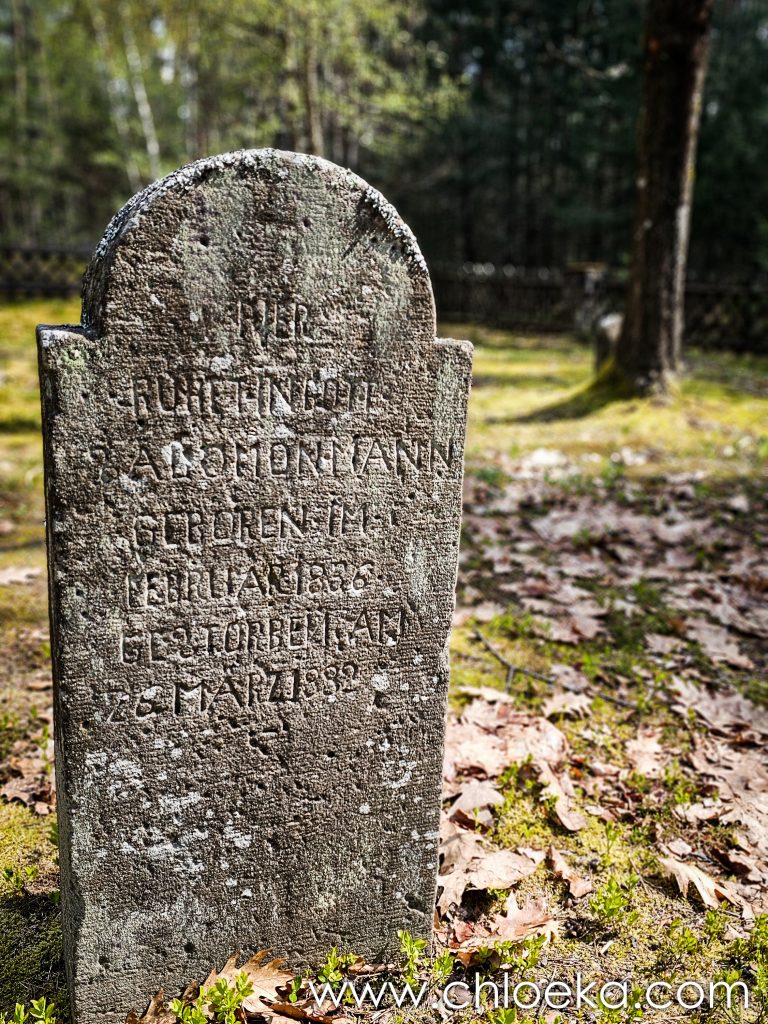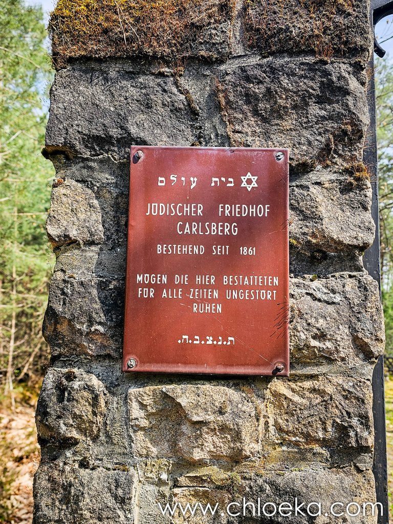 Le trésor du jour se niche donc au cœur de la forêt, presque introuvable, minuscule cimetière juif. Rien ne l’annonce vraiment. Il faut savoir qu’il est là, ou tomber dessus par hasard, comme sur un fragment d’histoire oublié. Ouvert en 1861, il n’a presque pas eu le temps d’exister. La communauté de Carlsberg disparaît dès 1868. Quelques années seulement, à peine une présence, puis plus rien — ou presque. Il reste un enclos dérisoire et quelques pierres. Certaines tiennent encore debout, d’autres penchent, d’autres s’effacent. La mousse les recouvre, les inscriptions se dissipent. Rien de monumental, rien qui cherche à durer. Juste des traces. Et pourtant, ce lieu dit quelque chose de profondément politique. Il raconte des existences tolérées un temps, puis dissoutes, rendues invisibles. Il dit la fragilité de certaines présences dans l’histoire, leur disparition presque sans bruit, comme si elles n’avaient jamais compté.