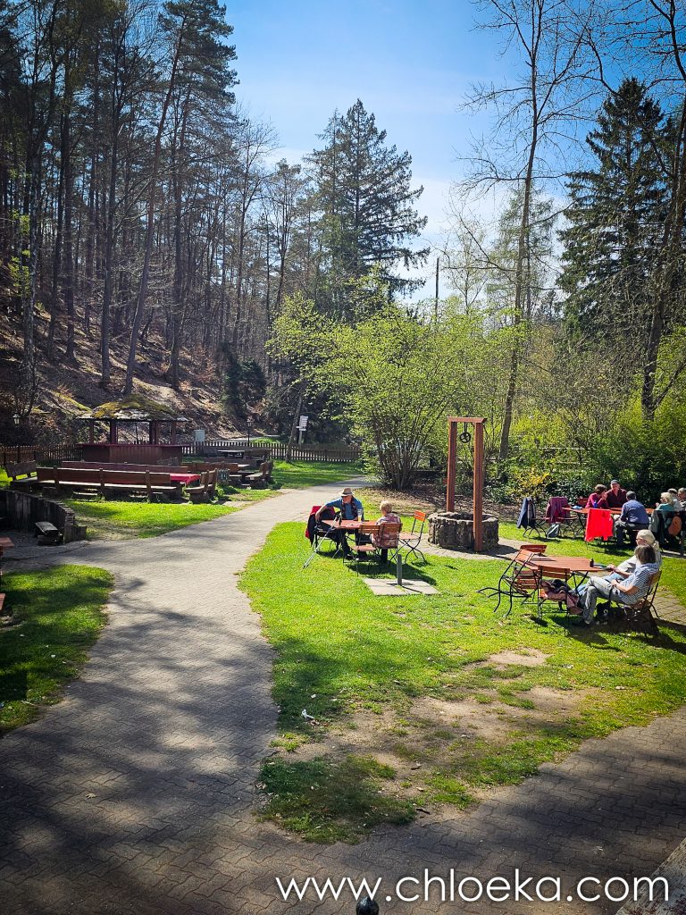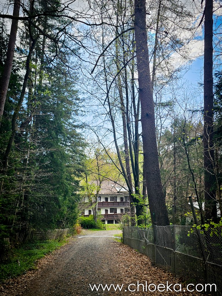 J’avais localisé l’endroit lors de ma mini randonnée de la veille. Situé dans un creux de forêt, alors que les sentiers étaient vides d’humains, lui grouillait de monde et de vie. Beaucoup de famille qui semblait connaître et apprécier ce lieu pourtant isolé des routes passantes. Cet endroit a quelque chose de simple et profondément ancré. Une grande bâtisse claire posée là comme un refuge ancien pour marcheur·euses fatigué·es.