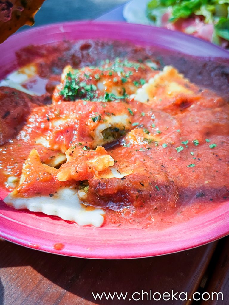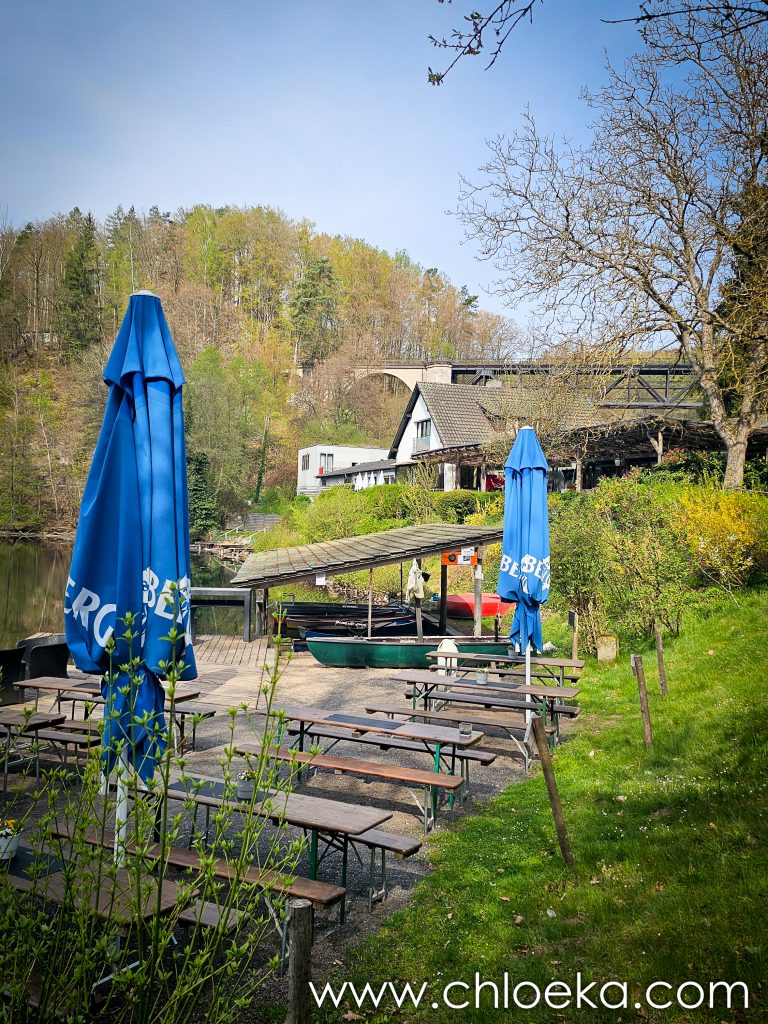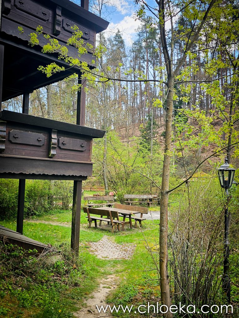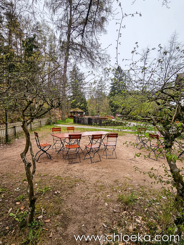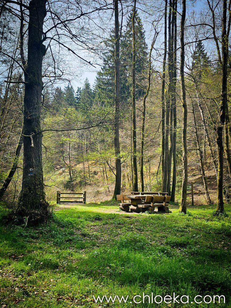 Au retour, on décide d’aller déjeuner au Rahnenhof, à 500 mètres de la maison, en empruntant un joli chemin boisé. Nous sommes vraiment tout près. Avec la douceur printanière et le soleil du jour, on s’installe dehors, sur les jolis salons de jardin en bois. Ce séjour se tisse de joies simples, de lenteur appréciée, de moments précieux.