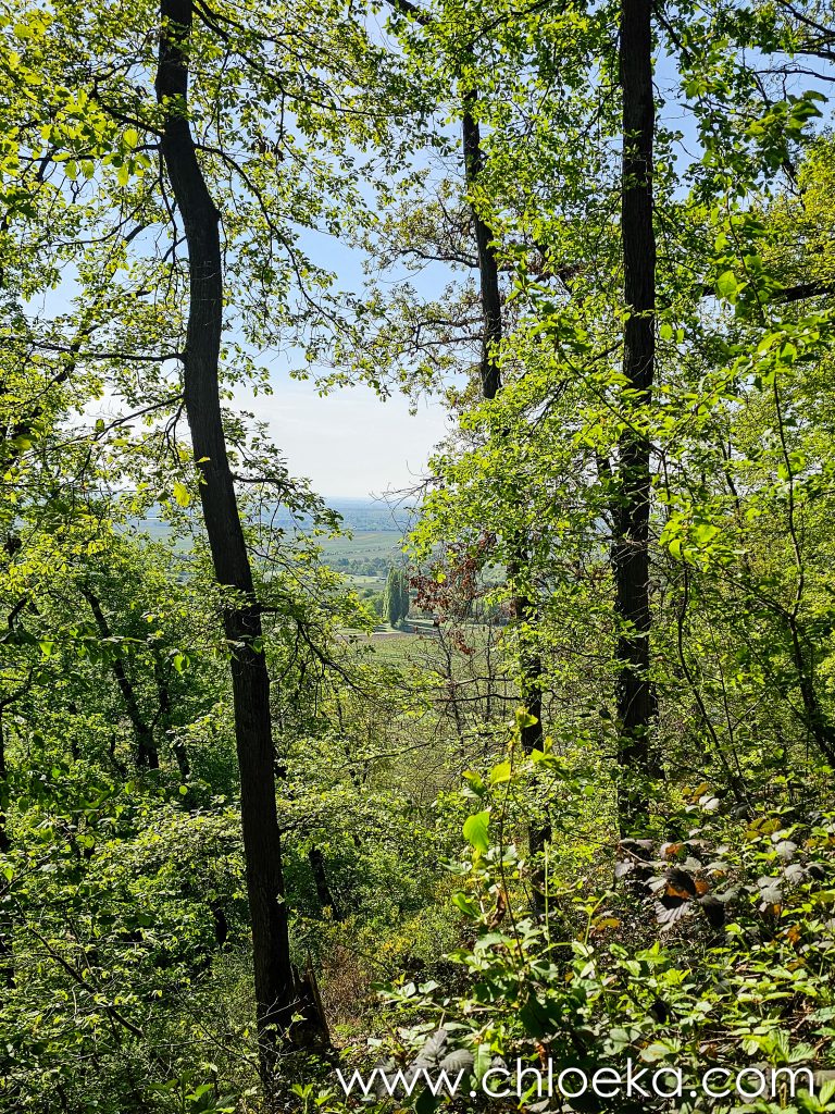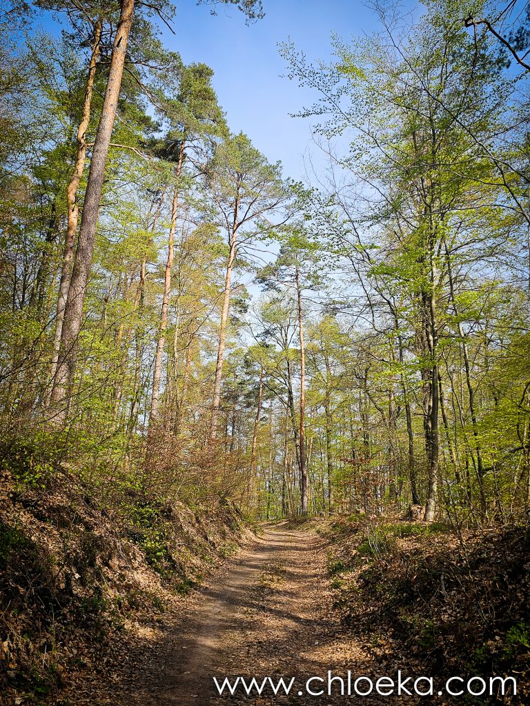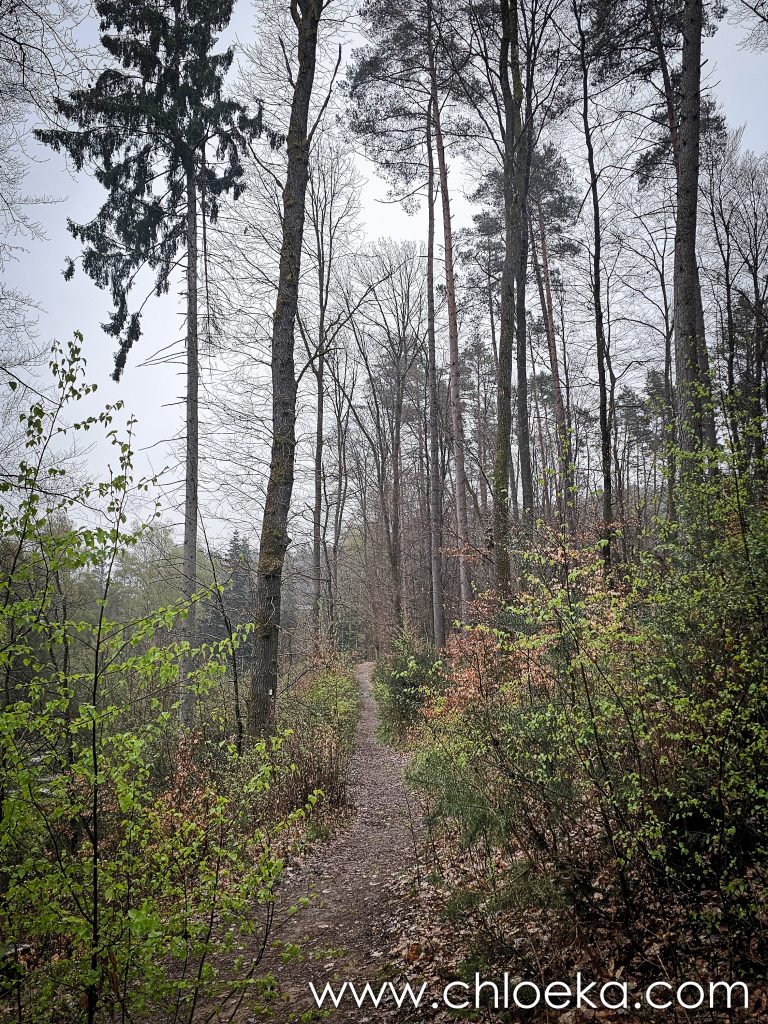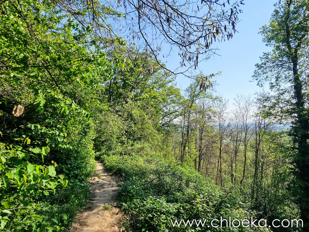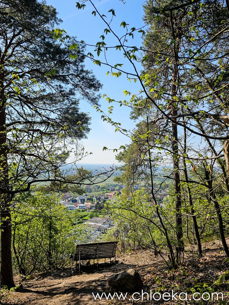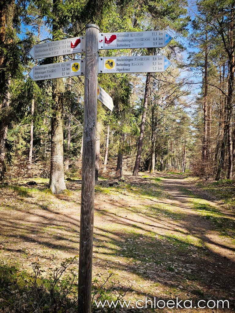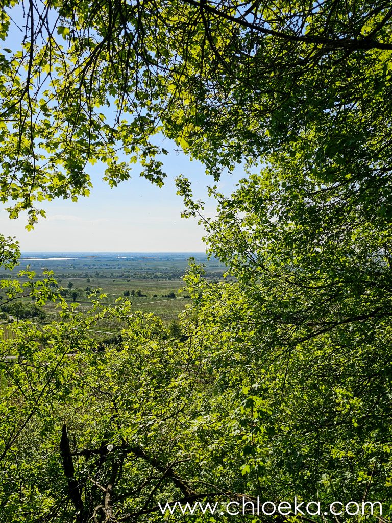 Sur la route du retour, on s’est arrêté pour un petit circuit de 5 km sur les hauteurs de Königsbach an der Weinstraße, au pied des vignes. La forêt ruisselait de verts tendres printaniers, et le chant des oiseaux saturait l’atmosphère d’une joie débordante. Les températures étaient estivales.