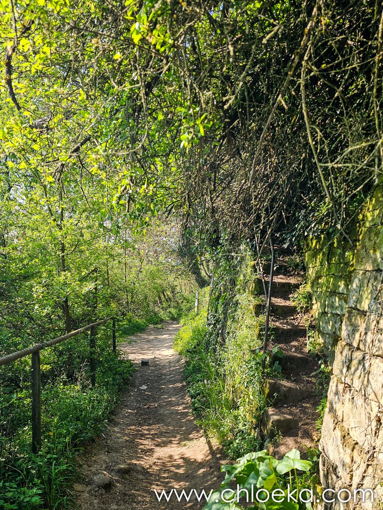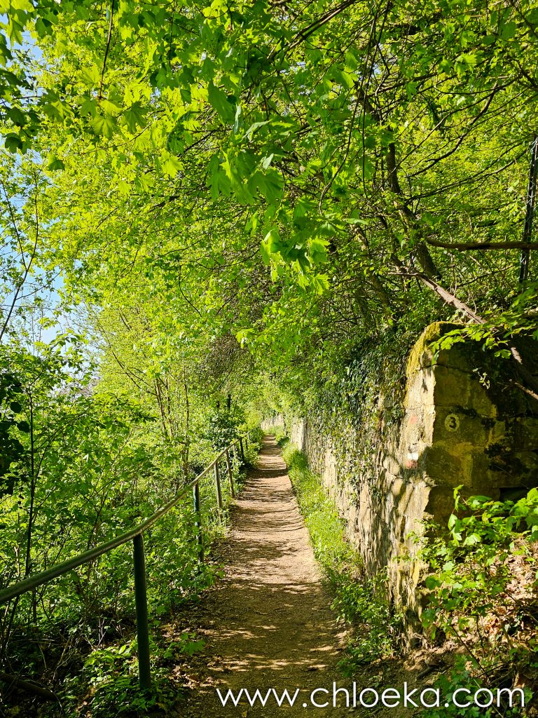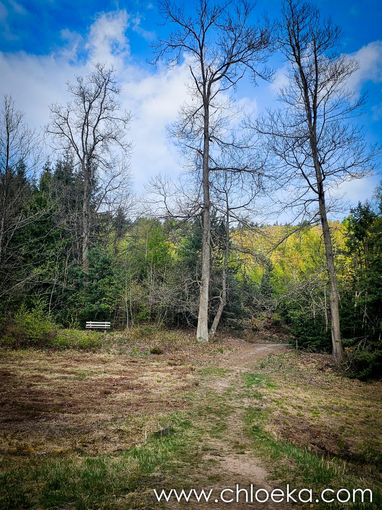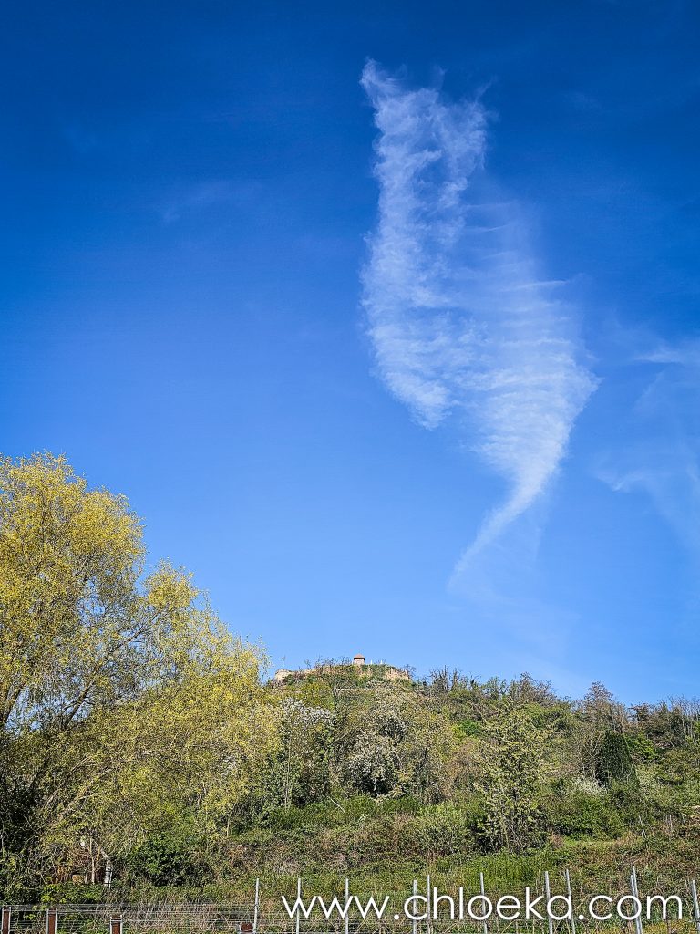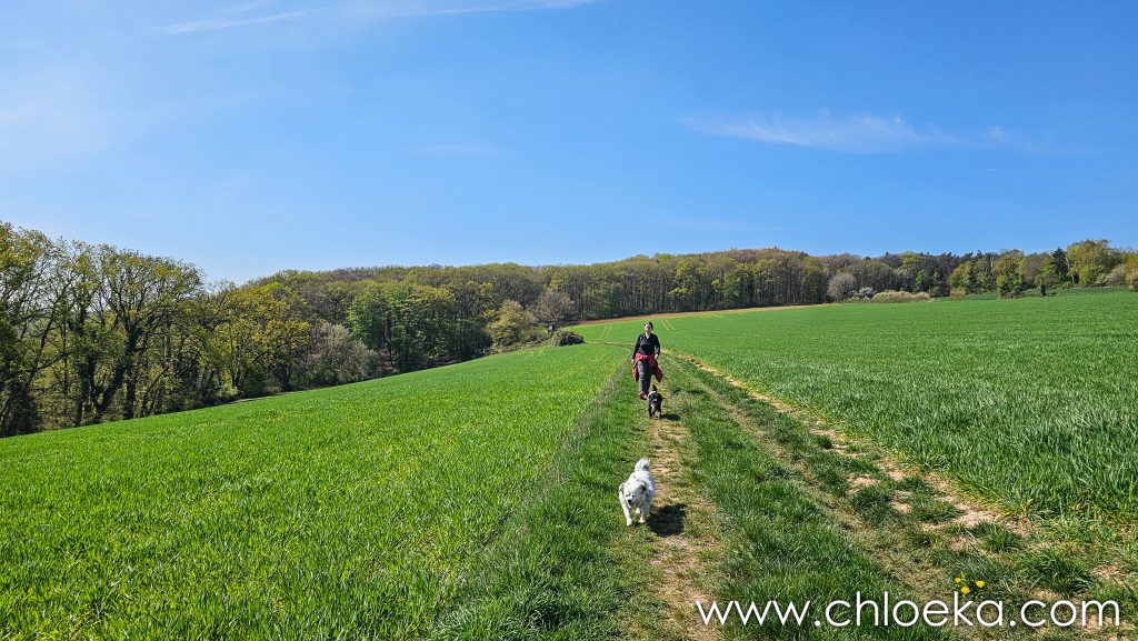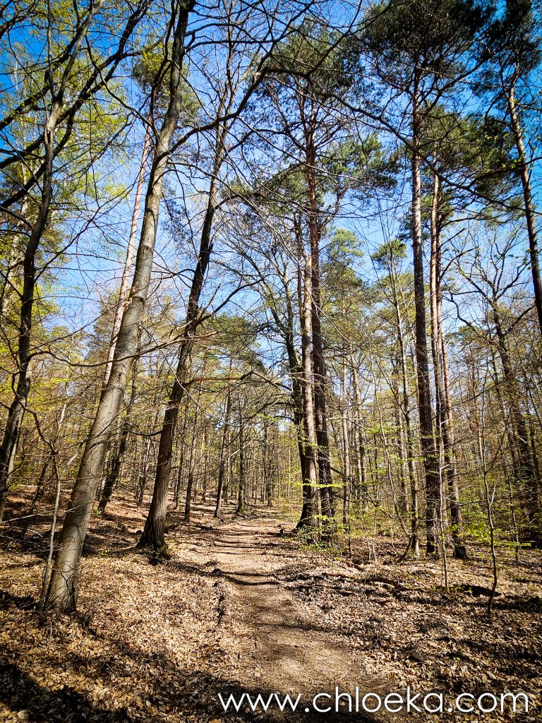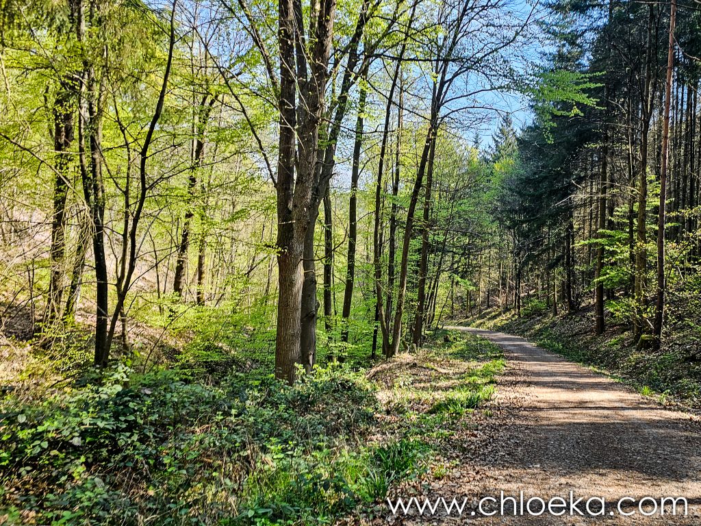 Sur la route du retour, on s’est arrêté pour un petit circuit de 5 km sur les hauteurs de Königsbach an der Weinstraße, au pied des vignes. La forêt ruisselait de verts tendres printaniers, et le chant des oiseaux saturait l’atmosphère d’une joie débordante. Les températures étaient estivales.
