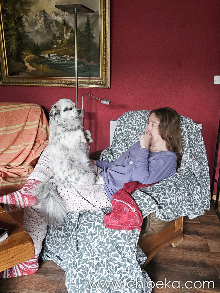 Ce matin, Phlau se sent « molle » et comme Suzy a bien marché ces derniers jours, elles décident de rester à la maison. Enfin, c’est surtout nous qui décidons pour Suzy malgré le fait qu’elle est toujours partante pour n’importe quelle randonnée !