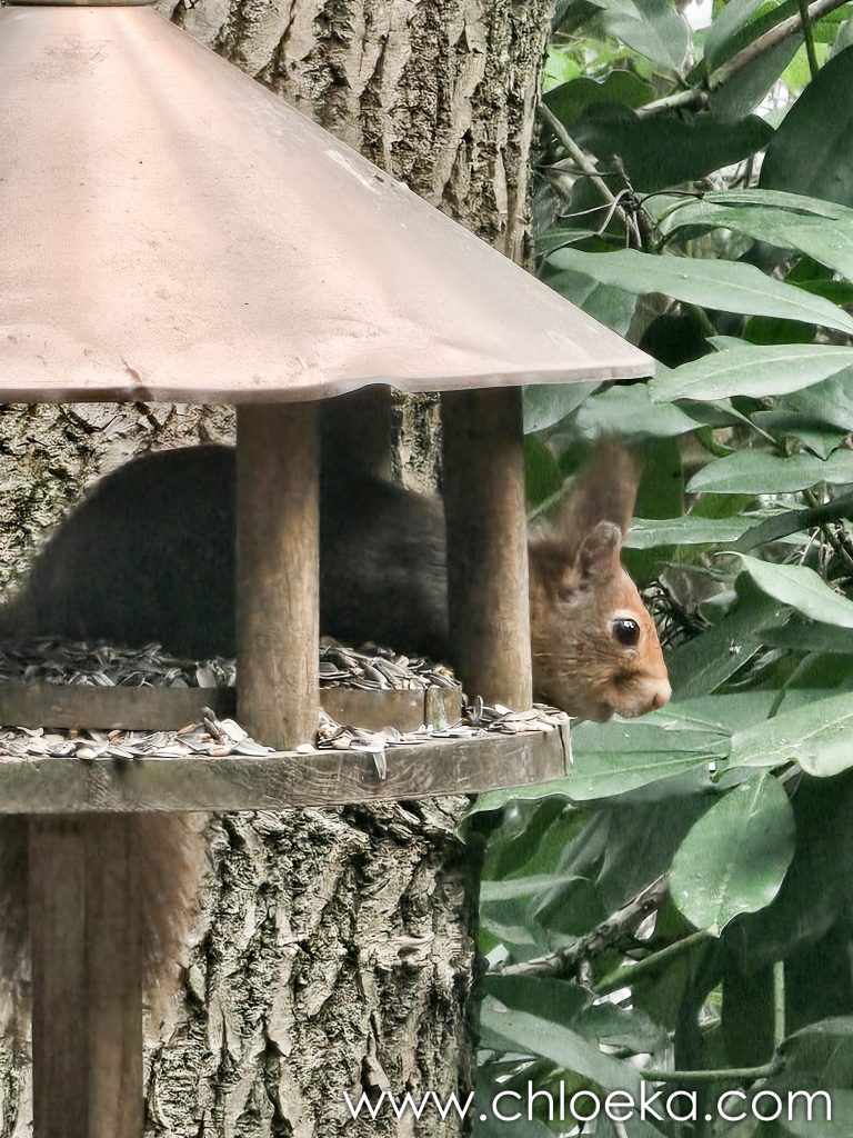 Puis la fuite de cette petite personne rousse. Elle était bien là, pleinement présente. La mangeoire remplie de graines est visiblement sa cantine : je l’avais simplement dérangée en plein repas.