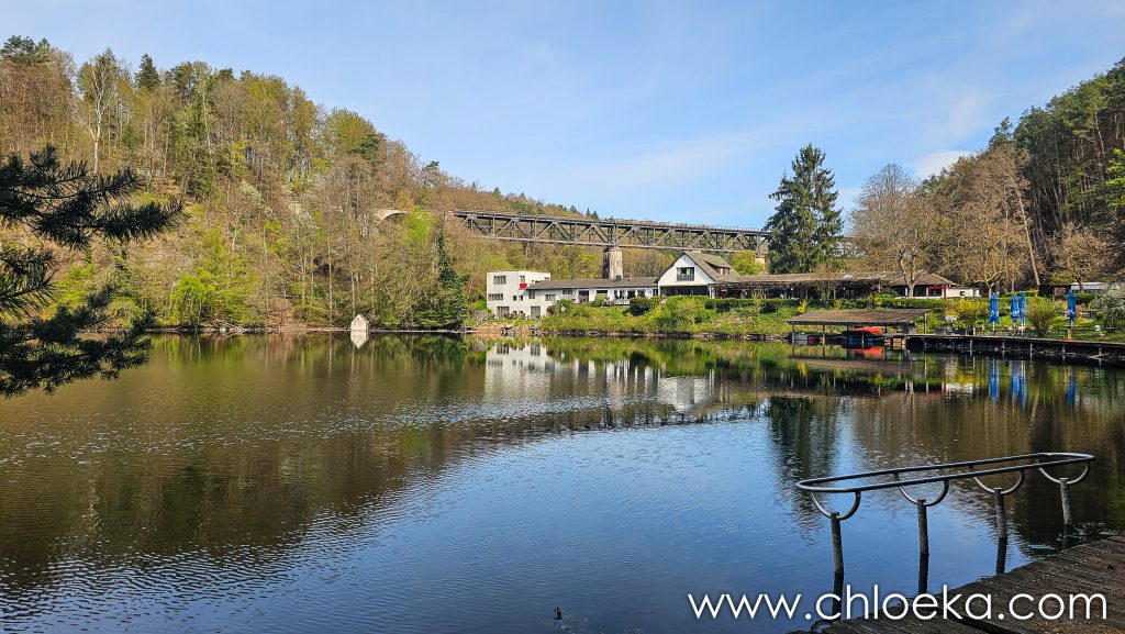 Puis, dans le creux du paysage, le viaduc de l’Eistal apparaît. Long de 271 mètres, construit en 1932, ancien pont ferroviaire aujourd’hui désaffecté, il traverse la vallée avec une précision métallique. C’est l’un des ouvrages les plus célèbres du Palatinat. Une ligne droite d’acier et de pierre, témoin d’une époque où l’on reliait, traversait, exploitait. Depuis 1988, plus aucun train ne passe. La structure reste. Suspendue entre usage et abandon.