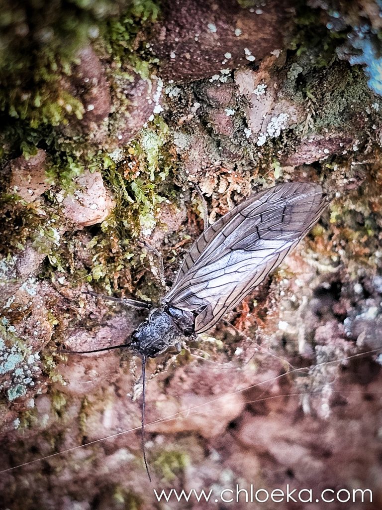 Sur les blocs de grés, au bord de l’eau, la mouche de pierre — fragile, presque invisible — rappelle la qualité du milieu. Sa présence dit quelque chose que les aménagements ne disent pas. Le contraste traverse tout le parcours : entre infrastructures et lenteur géologique, entre gestion humaine et dynamiques propres au lieu. On marche dans un espace composé. Mais jamais totalement maîtrisé.