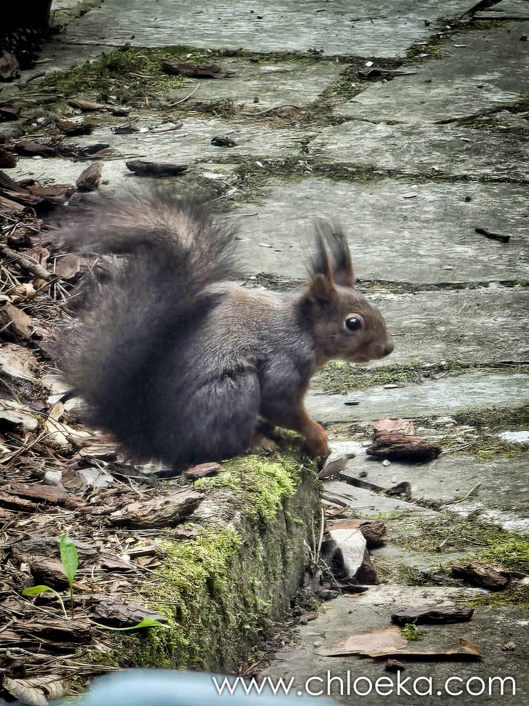 Les rituels sont installés au gîte et nourrir et observer les écureuils sont mes premières activités alors que tout le monde dort encore.