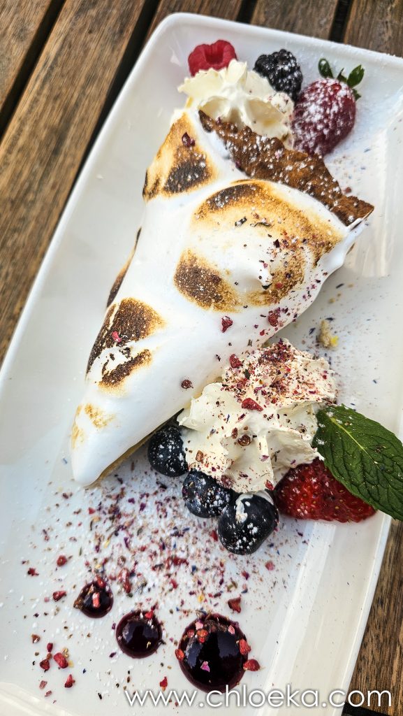 À l’extérieur, quelques tables en bois, espacées sous les arbres encore clairsemés, des aires de jeux pour les enfants. Rien de décoratif, juste l’essentiel : s’asseoir, respirer, laisser retomber la marche.