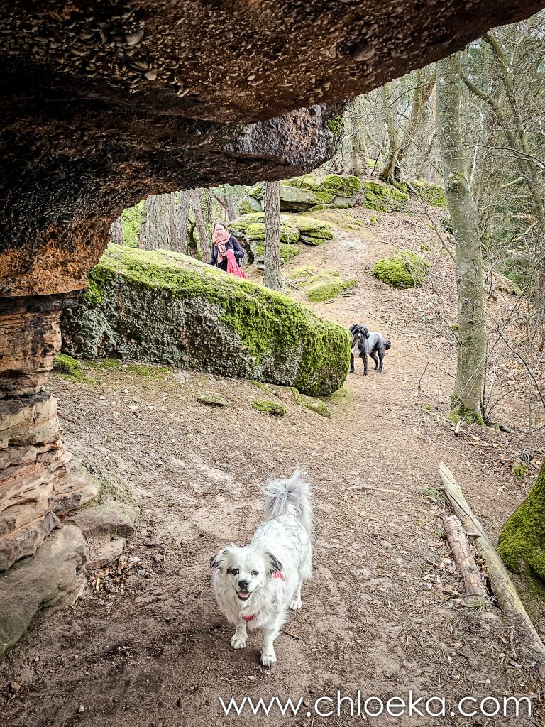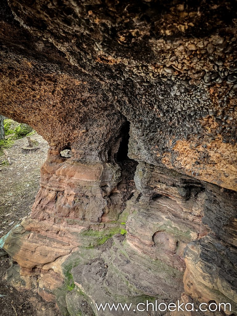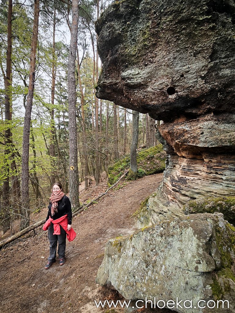 Plus loin, le Heidenfels demande un peu d’attention : marches creusées dans la pierre, passages étroits, tunnels naturels. On ne marche plus vraiment, on explore. C’est un agglomérat gigantesque de roches sombres rouges et vertes selon leur exposition aux vents. Impressionnant lieu qui peut aussi servir de refuge.